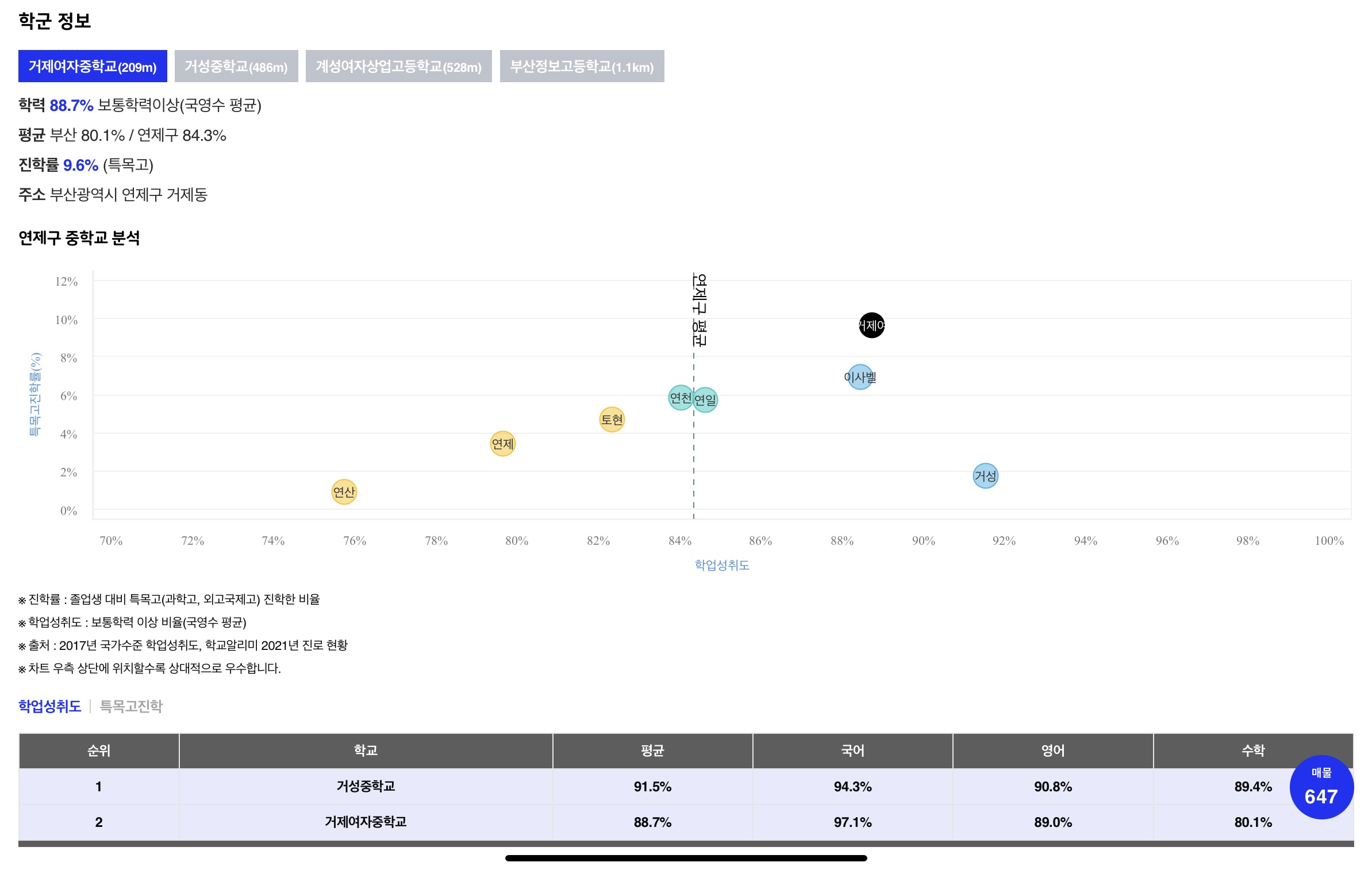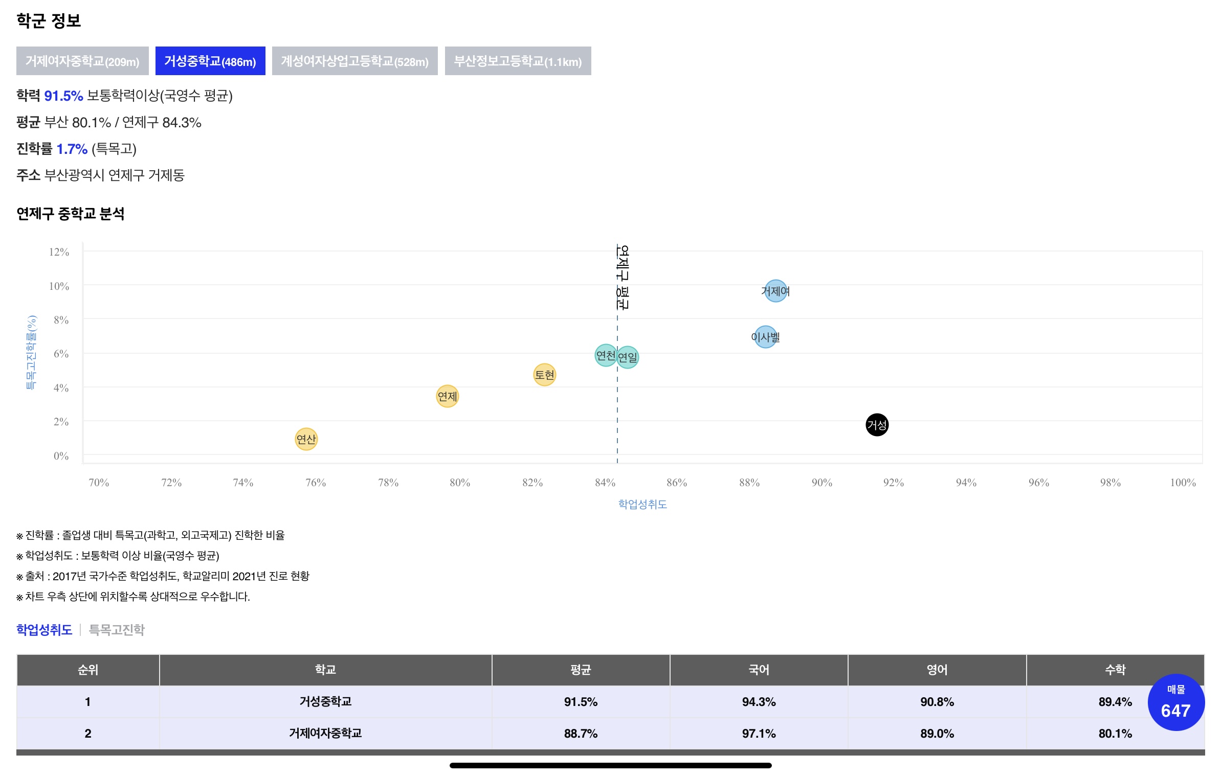 - 중학교는 거제여중과 거성중학교에 배정되네요. 거제여중과 거성중학교 둘다 부산에서 상위권인 학교입니다.