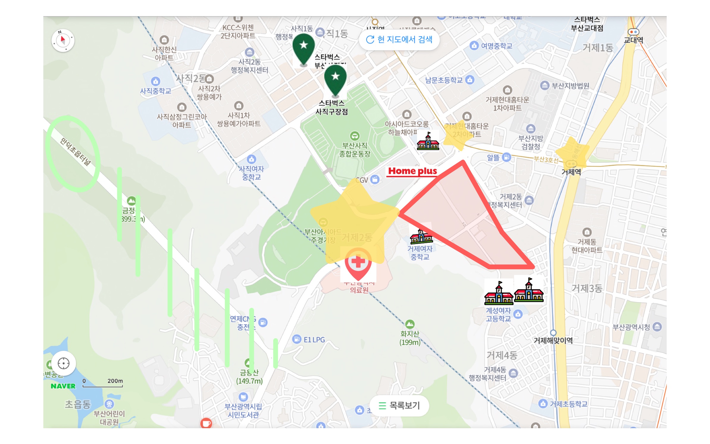 - 사직종합운동자의 수영장, 테니스장 이용기 가능하고 규모가 큰 홈플러스까지 살기 편리하게 만드는 환경이 될 것 같네요.