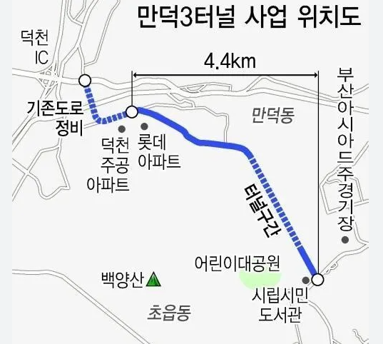 - 만덕 3터널이라는 교통호재가 있습니다. 터널 개통하면 가격상승이 조금 있을 거라는 예상이 듭니다. 현재 만덕 1터널, 만덕2터널이 전라남도, 경상남도 지역에서 부산으로 유입되는 차량의 관문역할을 하고 있는데요. 차량 통행이 너무 많아 만덕3터널을 만들어 차량을 분산시키고자 하는 목적입니다. 부산 내 북구 만덕동에서 연제구 거제동까지 이동뿐만 아니라 타지역과의 이동도 편리해질 예정입니다.