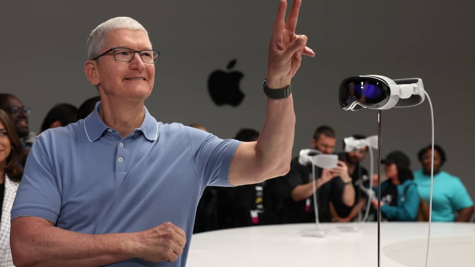 출처. 애플 팀 쿡 애플 CEO는 "비전 프로는 공간 컴퓨팅이라는 새로운 플랫폼을 소개하는 혁명적인 신제품"이라고 치켜 세웠다.