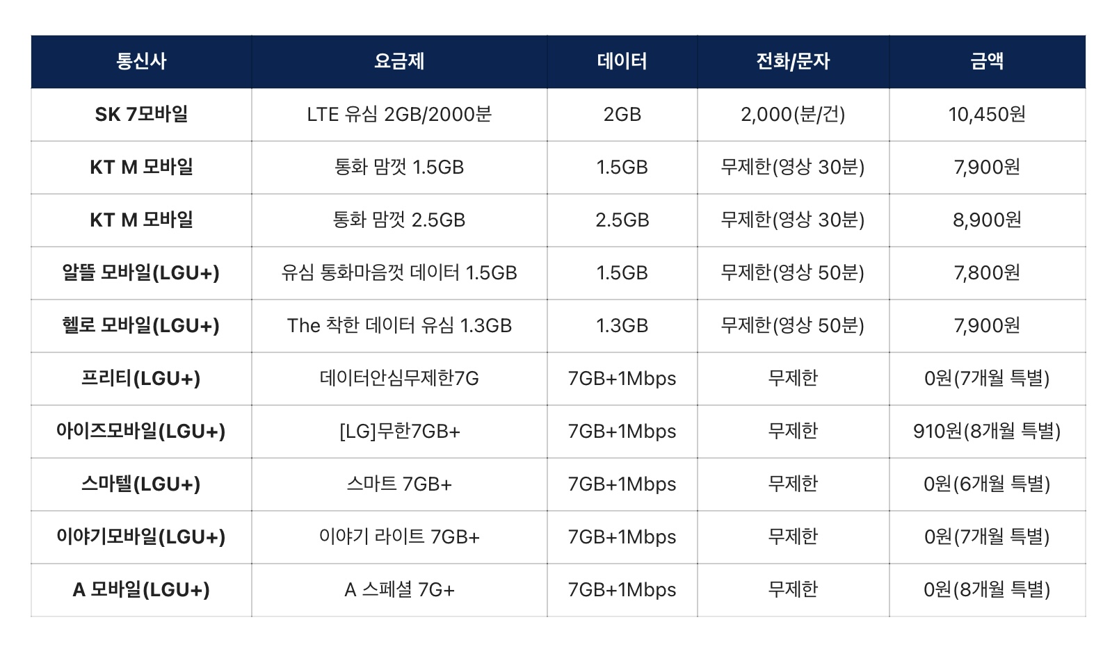 중소 통신사의 경우 기간을 잘 확인해서 이용한다면 매달 적은 요금으로 이용할 수 있을 것 같습니다.