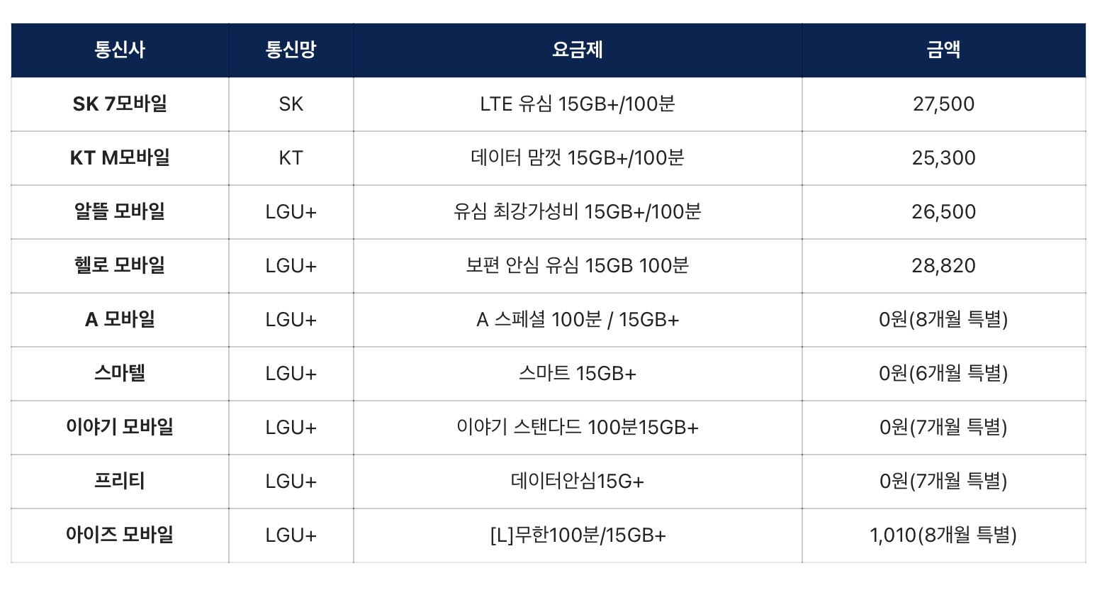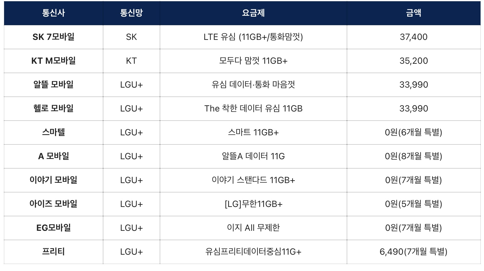 중소 통신사의 경우 기간을 잘 확인해서 이용한다면 매달 적은 요금으로 이용할 수 있을 것 같습니다.