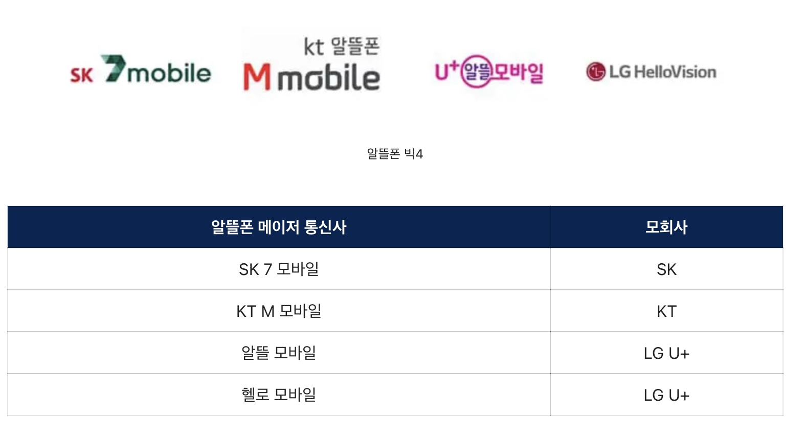 위 4개 알뜰폰 통신사는 기존 3사 통신사의 자회사입니다.