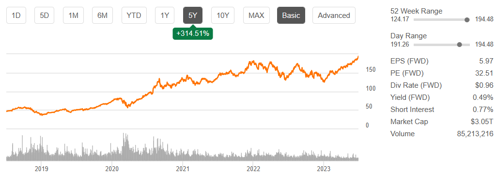 물론, 애플은 꾸준히 가져가야 할 주식이라고 본다.가지고 있으면 걱정이 없다. 그냥 편안하다. 오늘 -0.5% 내려도 내일, 모레는 0.6% 오를 거 같다. 애플은 작년 금리인상 하락장에서 많이 하락해봤자 고점 대비 -20%였다.(엔비디아, 테슬라 같은 고성장주들은 -60%, -70%)