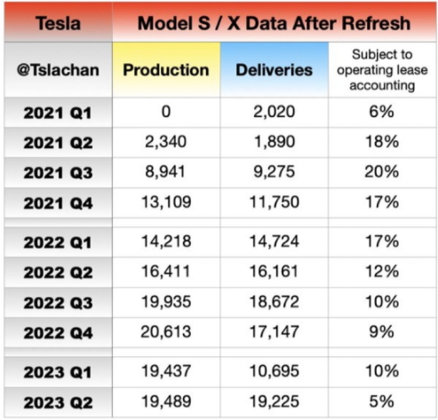 23년 1분기 테슬라의 모델s와 모델 x의 인도량은 10695대였기 때문에 1분기 대비 2분기의 성장률은 무려 80%나 된다.