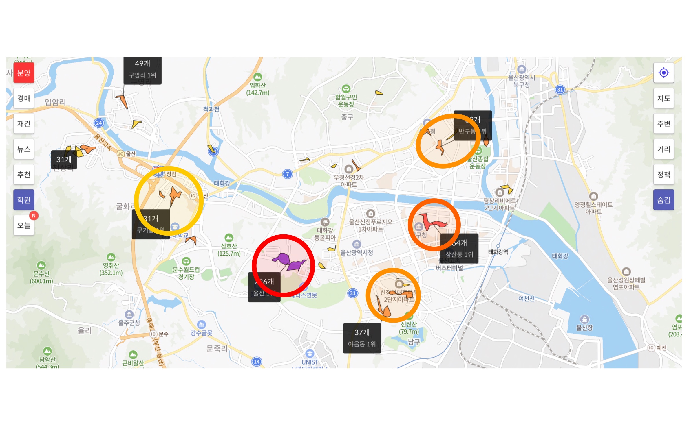 울산 남구가 압도적인 입지를 가지는 것으로 보입니다.