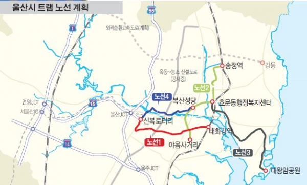 울산광역시 트램 노선도 울산광역시 구별 공급